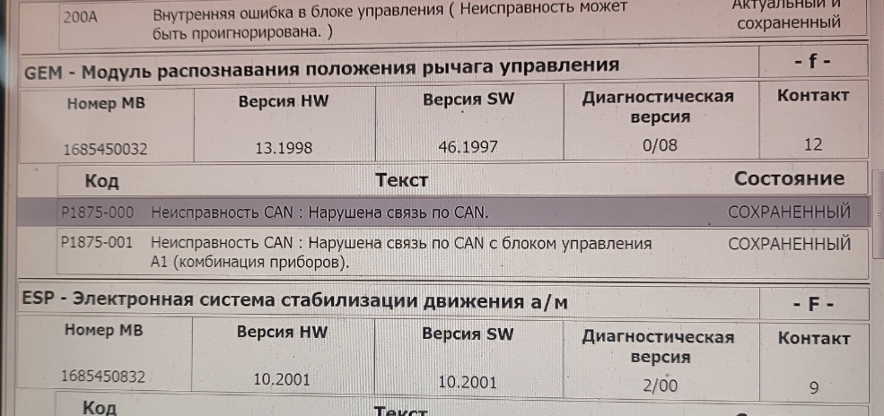 macho Добрый день! Владимир, прошу Выс написать номер телефона для консультации и возможно для записи к Вам на ремонт. W168 2000г.в. Жодино. Год назад вы давали номер , но аккаунт не восстановил- завел новый. В том году проблему решил - пропаял плату селектора, вчера проблема новая - F-ка не уходит. Ни сбросом Клемм, ни перезапуском, ни сбросом Делфи. Хотя положение селектора видит во всех положениях. Тачка нужна как воздух- жена в аэропорту работает, а туда так просто не добраться. Прошу помощи.